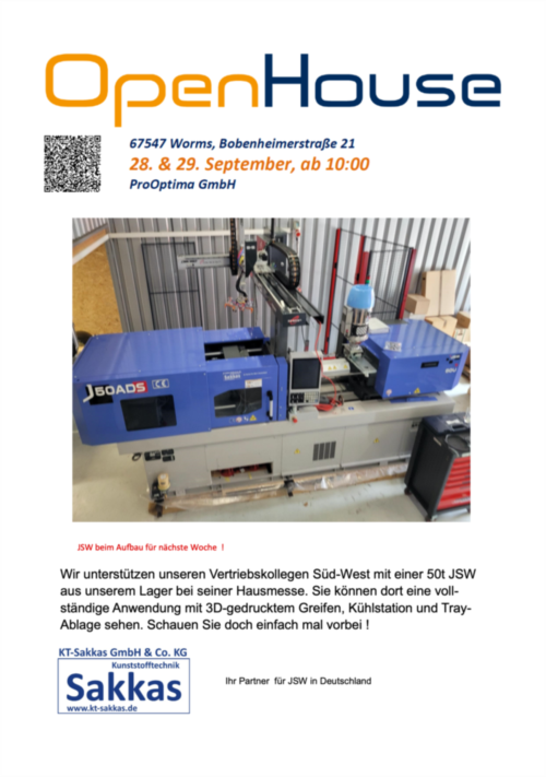 Der Schwerpunkt liegt auf Spritzgussmaschinen von JSW Japan für Mittel- und Norddeutschland.